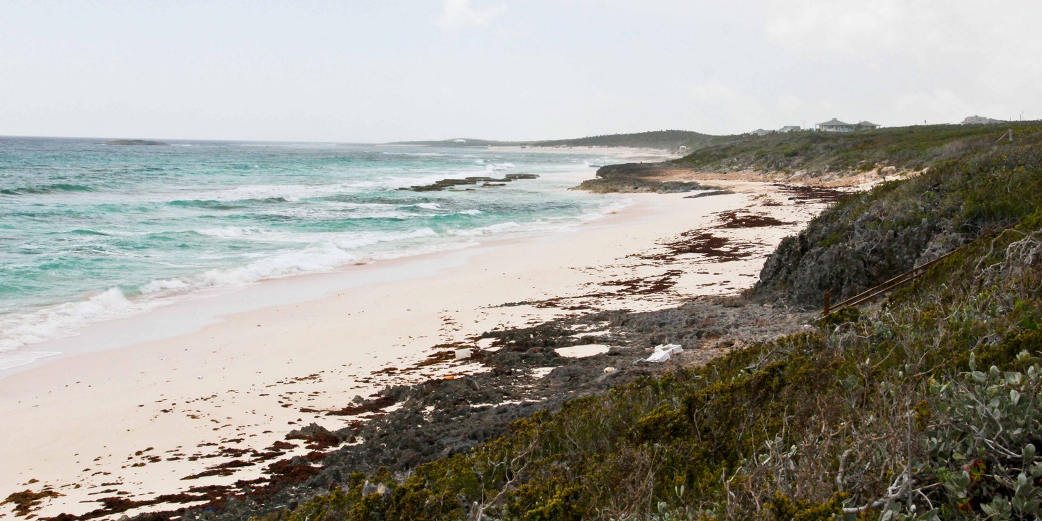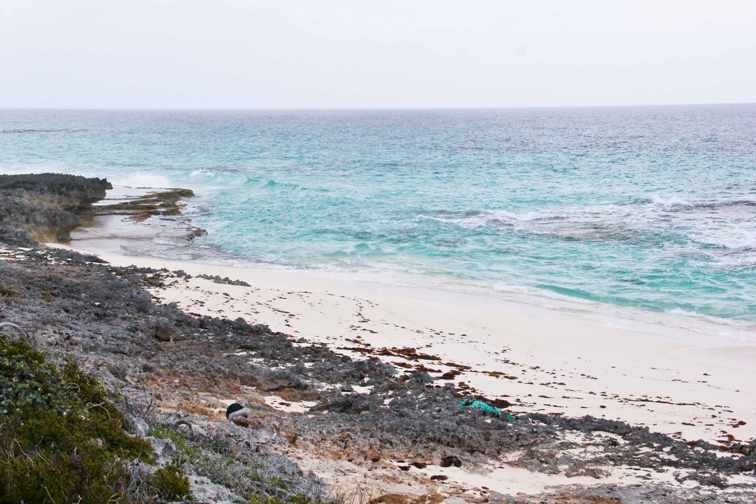 DIRECTIONS: Going south: After leaving Clarencetown, you'll pass Tommy's Tourist Inn and the Dept. of Health Services on the right. The next paved road to the left goes to the Taylor Plantation Ruins and a high hill with great views of Clarencetown, the harbour, the cays, and the Lochabar Point blue hole. It's a little under two miles to the next left hand paved road. There's an electric line and there may be some barrels along the road. This road will take you to the northern most part of Lochabar beach. There is a house overlooking the beach. Park north of the house. If you continue south another 1/4 mile you'll come to a road marked Ridge View Drive. Turn here and park at the sign that says "Beach Access." The walk goes up a somewhat rocky path that at the top of the ridge quickly begins to disappear. Apparently, no one has visited this part of the beach in quite some time as the path is overgrown. So bring a machete. The path, if it existed, would take you to the southern end of the northern beach. There is a much larger southern section to Lochabar and I know from Google earthview that there is a road that appears to go to a parking area with a path down to the beach that would put you about mid beach. Although it's only 1/2 mile south of Ridge View Dive, somehow I missed it. Heading north: from Dunmore, it should be 0.9 miles to the road (undiscovered) that takes you to the southern section of Lochabar beach and 1.4 miles to Ridge View Drive. The road to the northern section of beach is only 1/4 mile north. If you get to Tommy's Tourist Inn you've gone too far.