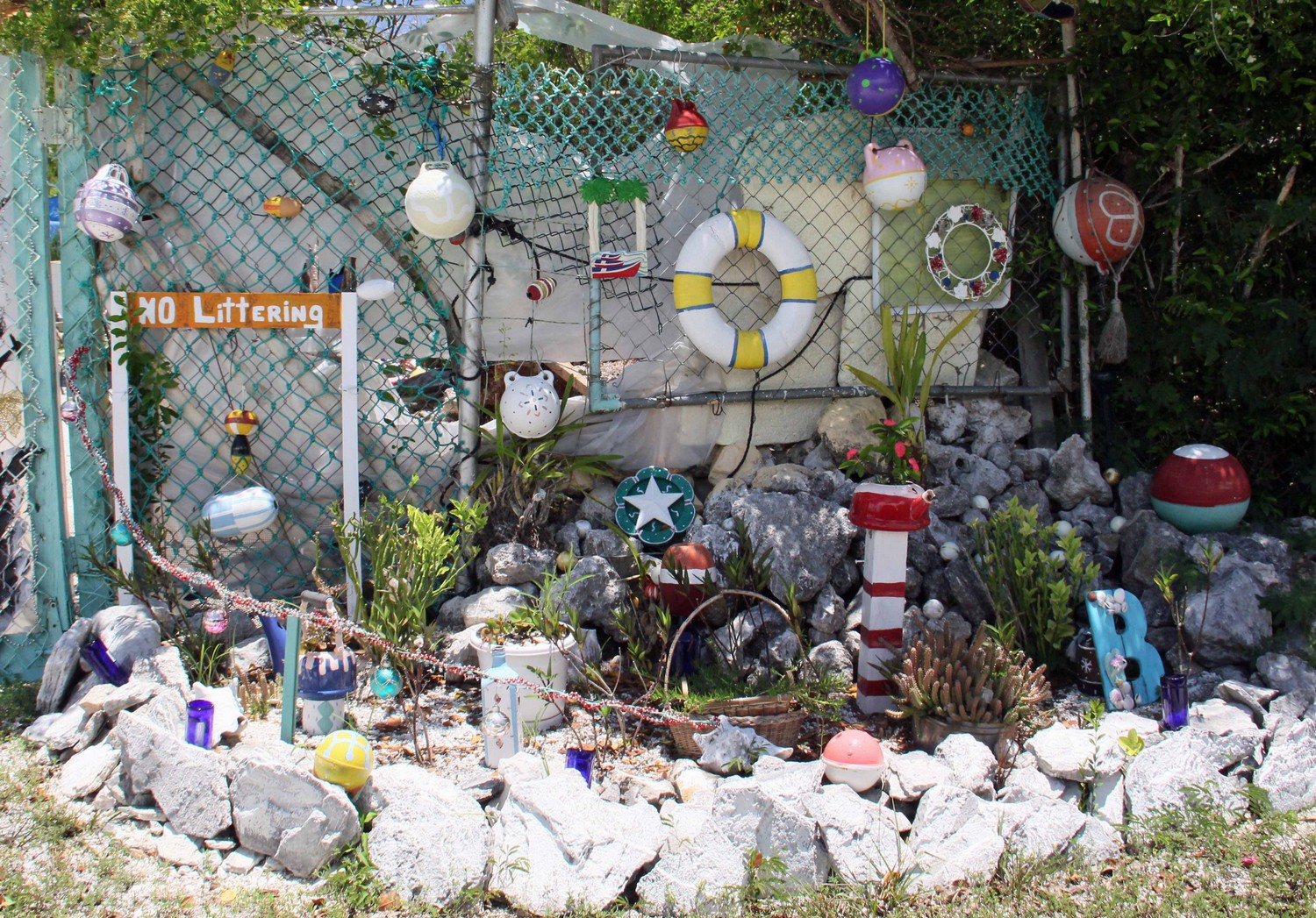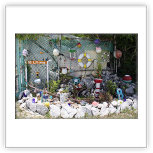 DIRECTIONS: There are three roads to O’Neils. One is easy. One is passable. One isn’t. The easiest and recommended way is to take the southern most paved road that goes past the Batel tower. If you’re coming from the north, this may mean a few extra miles of driving, but it also means an easier drive without having brush coming into your car (the northern road) or finding that after maybe a half mile you really don’t want to even try and go down that road (the middle road) and have to back out. Heading north: As you leave Simms, turn right onto the first paved road, staying on it as it makes a left hand bend. You’ll go through the village of O’Neils, making sure to check out the quaint collection of oddities at one of the residences (see below), and after the paved road turns to sand, take the first right and follow it until you can’t go any further. Be careful in parking, as there are some nonobvious holes that you can back into. Heading south:As you leave Deals Beach, look for the first paved road on the left. Turn and follow as above.